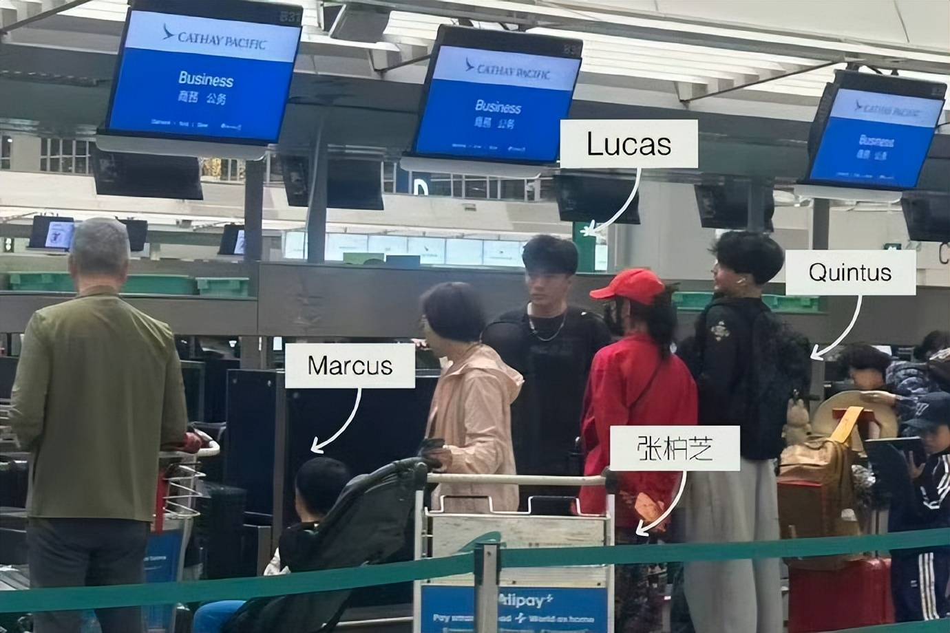 画面里,这一家子的分工相当明确:主角Lucas一身黑色休闲装,气质沉稳,全程低调地陪在妈妈身边,俨然一副小大人的模样;15岁的二儿子小Q则主动担当起“行李担当”,推着大堆行李还不忘展露阳光笑容,活力十足;7岁的小儿子Marcus则乖乖坐在婴儿车里,不吵不闹。母子四人默契配合过安检,温情满满的家庭氛围几乎要溢出屏幕。