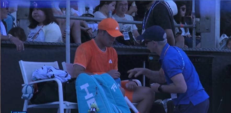 值得注意的是,比赛过程中吴易昺状态略显波动,在第二盘4-2领先并且处于30-0优势时,接连丢分11分,体现出一定体能压力。通过医疗暂停恢复调整后,他稳住了体力节奏,而对手反而展现体能下滑并有大腿抽筋现象,给了吴易昺可乘之机。此外,赛场外气氛同样热烈,不少中国球迷到场支持,著名演员吴尊也亲临现场为吴易昺加油。近年来吴尊对于网球运动热情高涨,本届澳网还为其他华人选手商竣程及张之臻助阵,与周杰伦、余文乐同现张之臻包厢。场间休息时现场观众齐声喊出“吴易昺牛逼”的口号,气氛火爆。