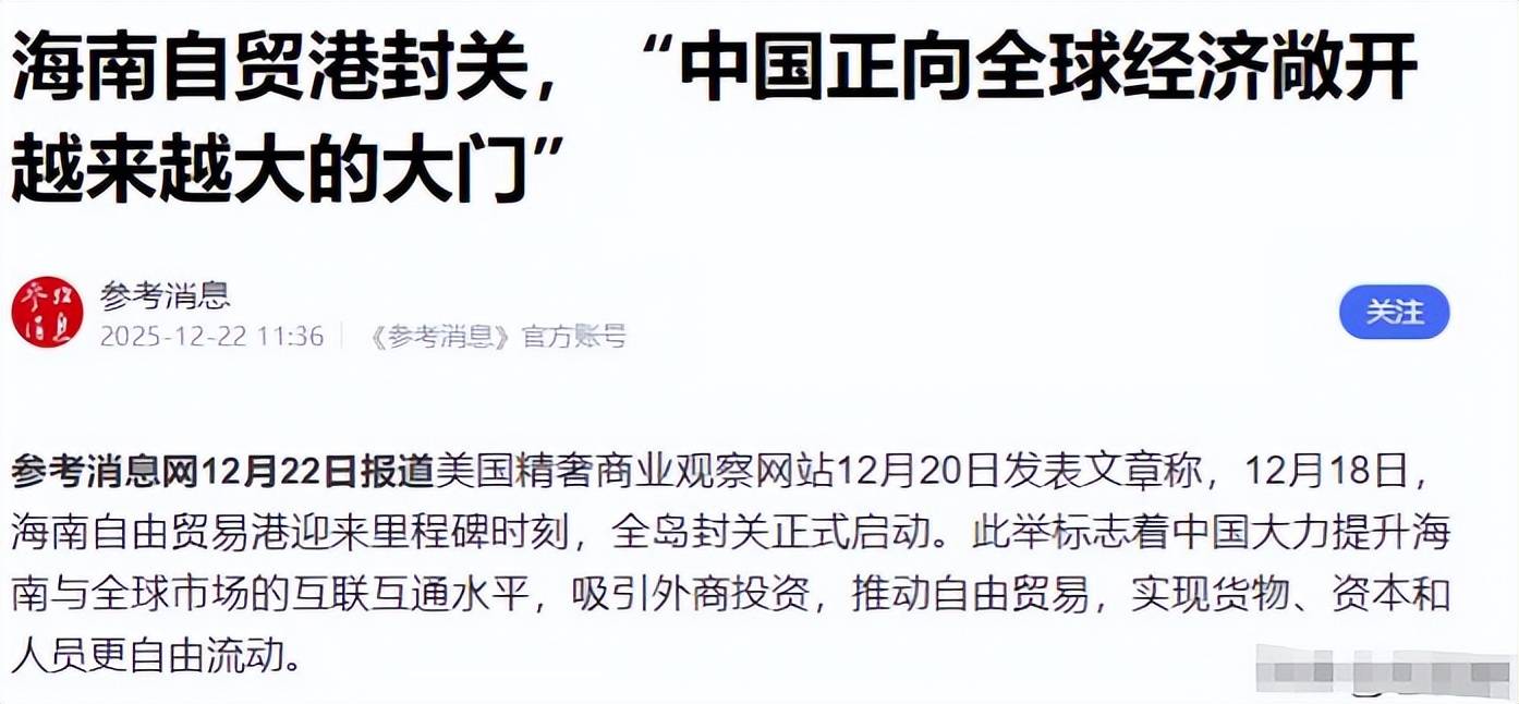 12月18日,国家正式宣布海南全岛封关运作。这消息在国内火得很,大家都在说“终于等到这一天”,把这当成中国经济新的增长极。