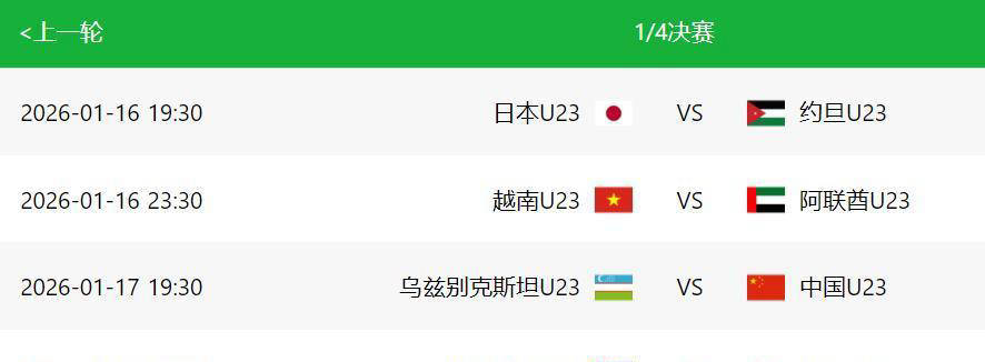 至此,U23亚洲杯八强名单及对阵图揭晓: