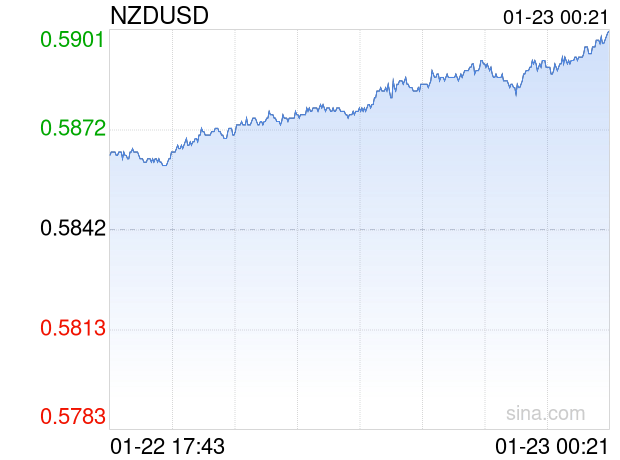 新浪外汇消息2026年01月23日,截至00时21分,外汇市场上新西兰元兑美元汇率突破1新西兰元兑换0.5901美元。涨幅为1.0099%
