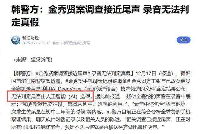 然而,这段关键的录音很快被质疑其真实性。金秀贤方面表示,这段录音可能是AI技术伪造的深度伪造音频。与此同时,他们还表示,那些曝光的所谓交往证据,并非家属所提供。