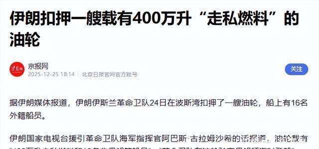12月24日,波斯湾响起一声巨响,打破了原本的平静。伊朗革命卫队直接登上了一艘油轮,并扣押了16名外籍船员,船上的400万升走私燃料也成为了他们的战利品。更令人震惊的是,这艘油轮被伊朗认为是地区燃料走私网络的关键载体,可以看作是对美方行动的对等报复。如今,美伊在海上的互掐局面不断升级,同时中俄也在背后给予支持。