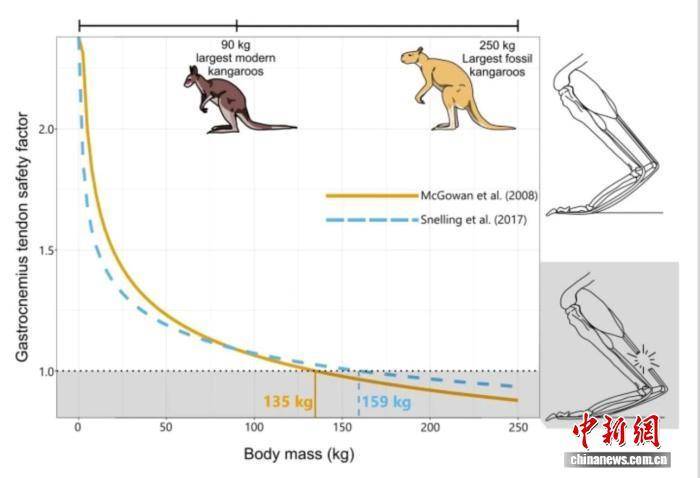 这一发现挑战了之前的研究结果,即体重超过160千克的巨袋鼠因体重过大,其脚踝无法承受跳跃的力量。