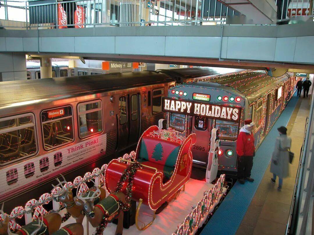 CTA假日火车是芝加哥地铁在每年冬季11月至12月时运行的一趟特殊列车。在圣诞气氛十足的六节车厢内,装饰着明亮的彩灯和蝴蝶结、飘带等节日挂件。