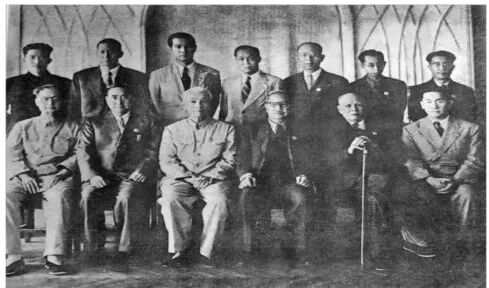 出席第一届政协会议的海外华侨代表(前排左起第三为戴子良)。