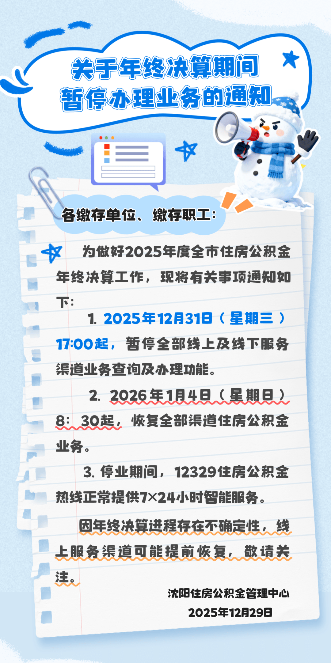 关于年终决算期间暂停办理业务的通知