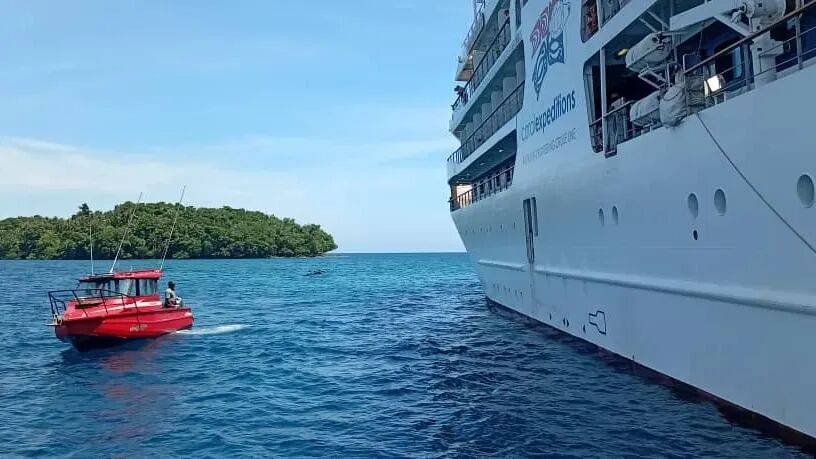 邮轮在距离Lae约90公里、隶属Morobe省海域的珊瑚礁处触礁。