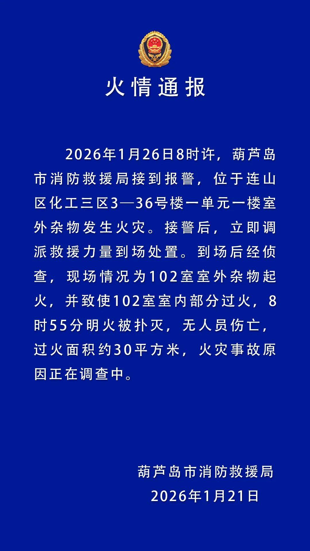 来源丨葫芦岛市消防救援局办公室(指挥中心)