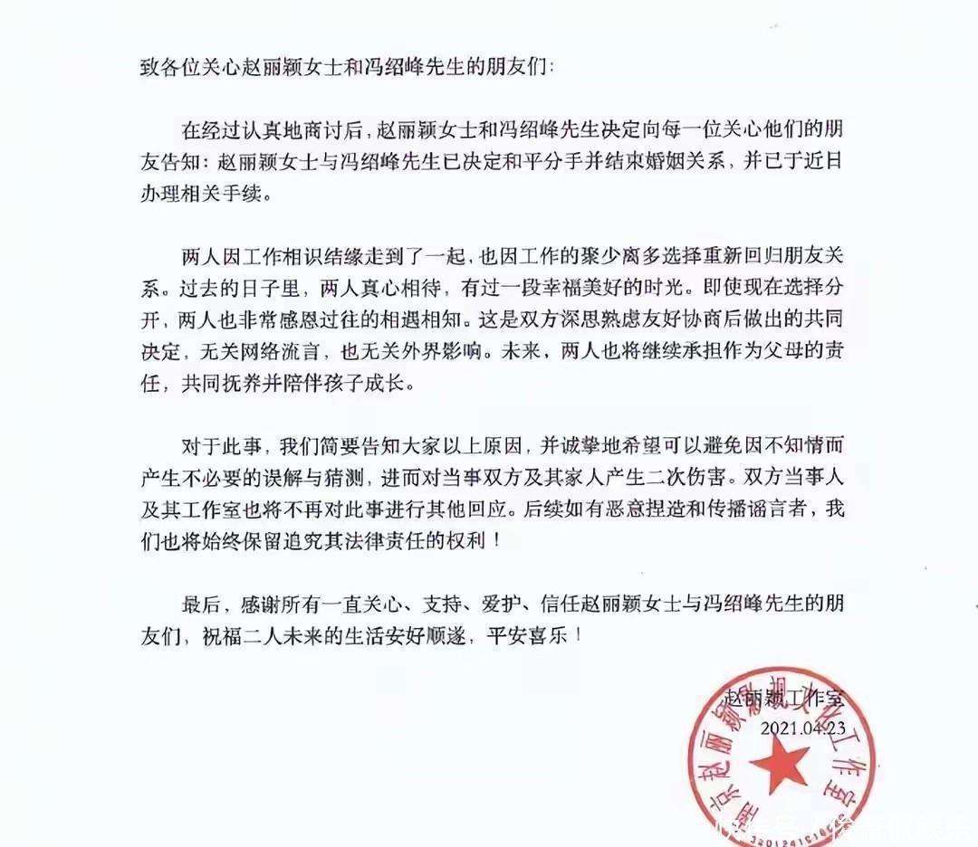 冯绍峰和赵丽颖的感情在彻底破裂后,并没有因为离婚而继续纠缠在一起,相反,他们处理得相当理智成熟。尽管感情走到了尽头,但为了儿子的感受,两人依旧没有形同陌路,而是继续共同陪伴孩子成长。这种相互体谅、和谐相处的状态,让他们的孩子成了不少来自离异家庭星二代们的羡慕对象。