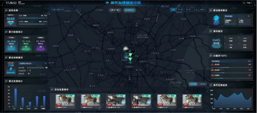 • 服务交互体:包含算法服务门户与运营大屏 —— 前者提供 “算法商城” 式体验,委办局可在线测试 “垃圾分类识别”“施工占道检测” 等能力并申请调用;后者支持对话式操作(如 “显示本周秸秆焚烧事件 TOP3 区域”),直观呈现感知、算力、事件运行态势。