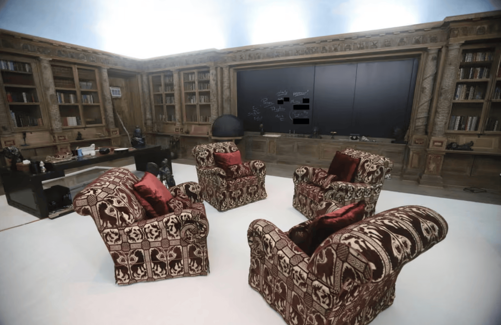 最新公布的图像展示的是一些外部建筑和内部设施,包括游泳池区域、一些卧室和浴室、一间配有大书桌和黑板的图书馆、一间带有内置长凳的大理石淋浴房等等。在室内的一面墙上,挂着一些较为诡异的面具。房间内还有一部老式的松下牌座机,座机上标注有一些人名,其中一些敏感的人物名字在公布的照片中被涂黑隐藏。