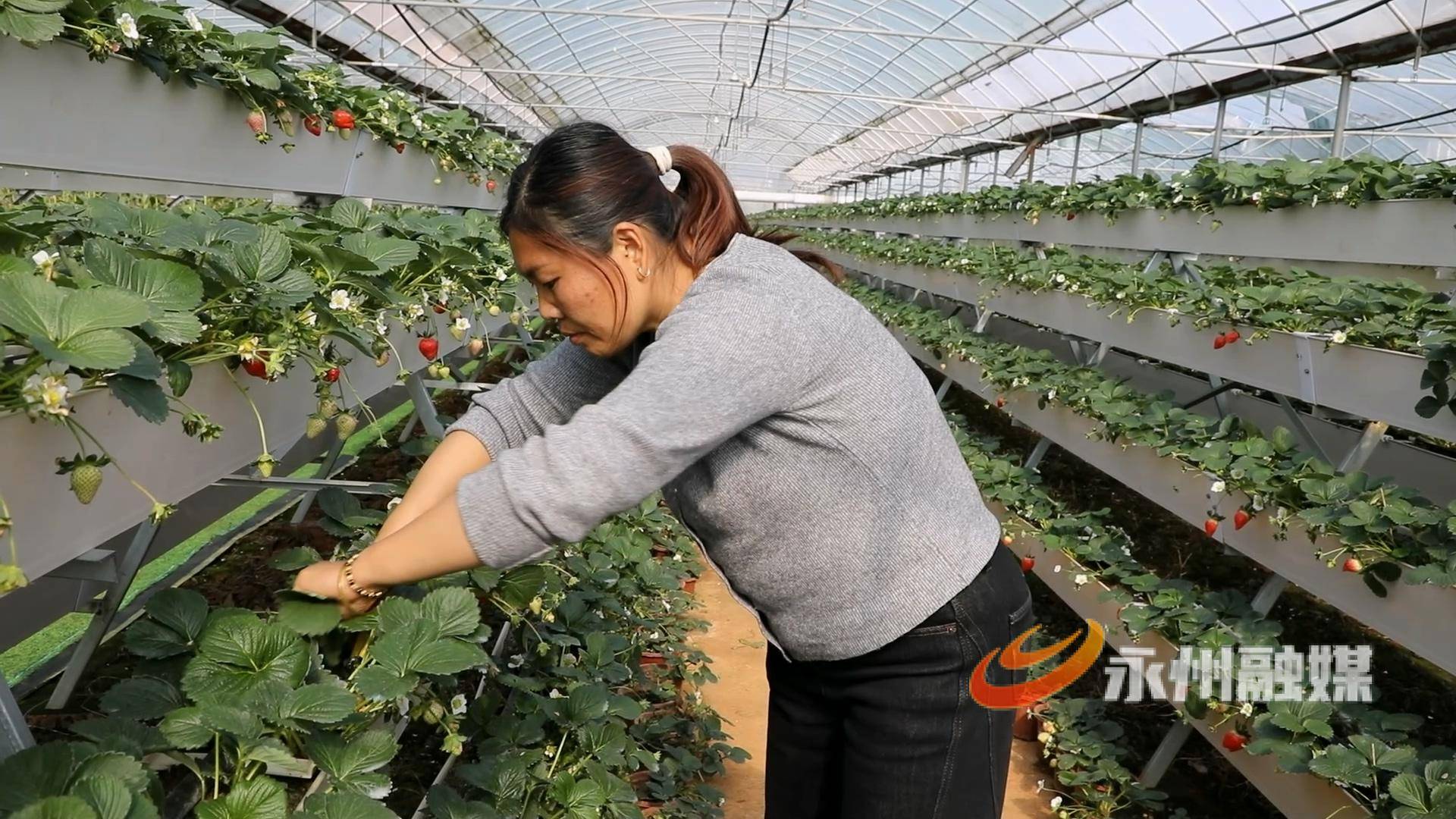 2023年以来,种植户吴春香巧用育秧大棚“空窗期”发展草莓种植,通过引进优质种苗、精研培育技术,产出的草莓品质优良,吸引大批游客慕名前来体验采摘乐趣。