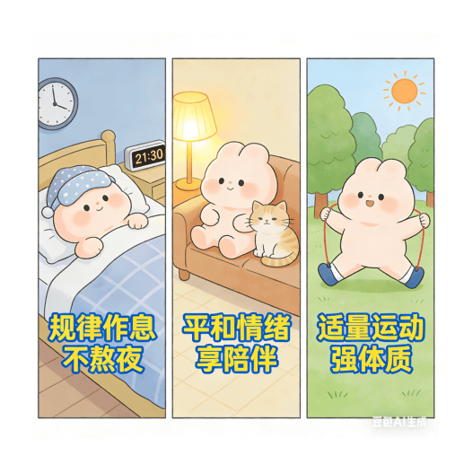 作息规律,避免熬夜:保持正常的作息节奏,避免连续熬夜、通宵玩乐,保证充足的睡眠。