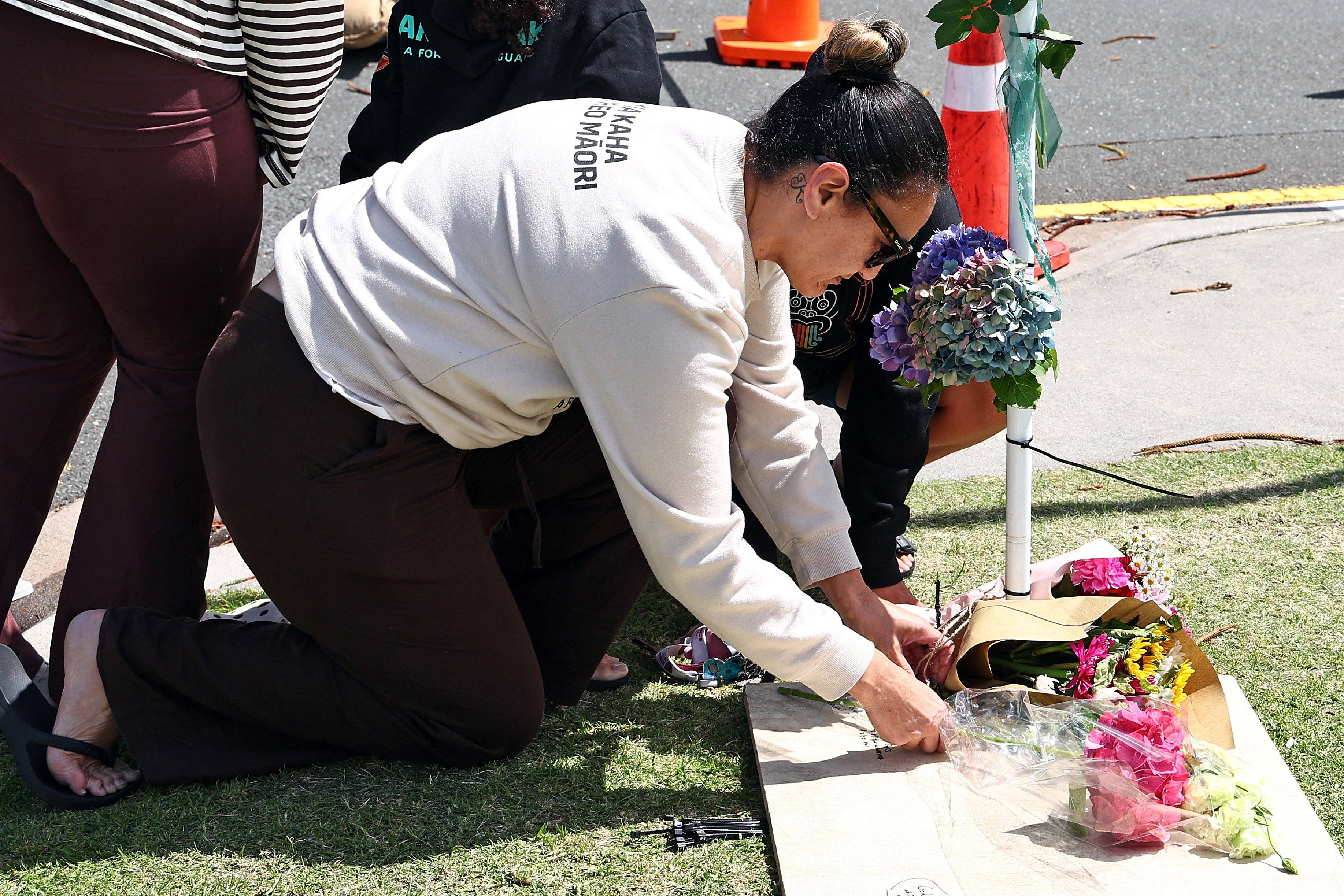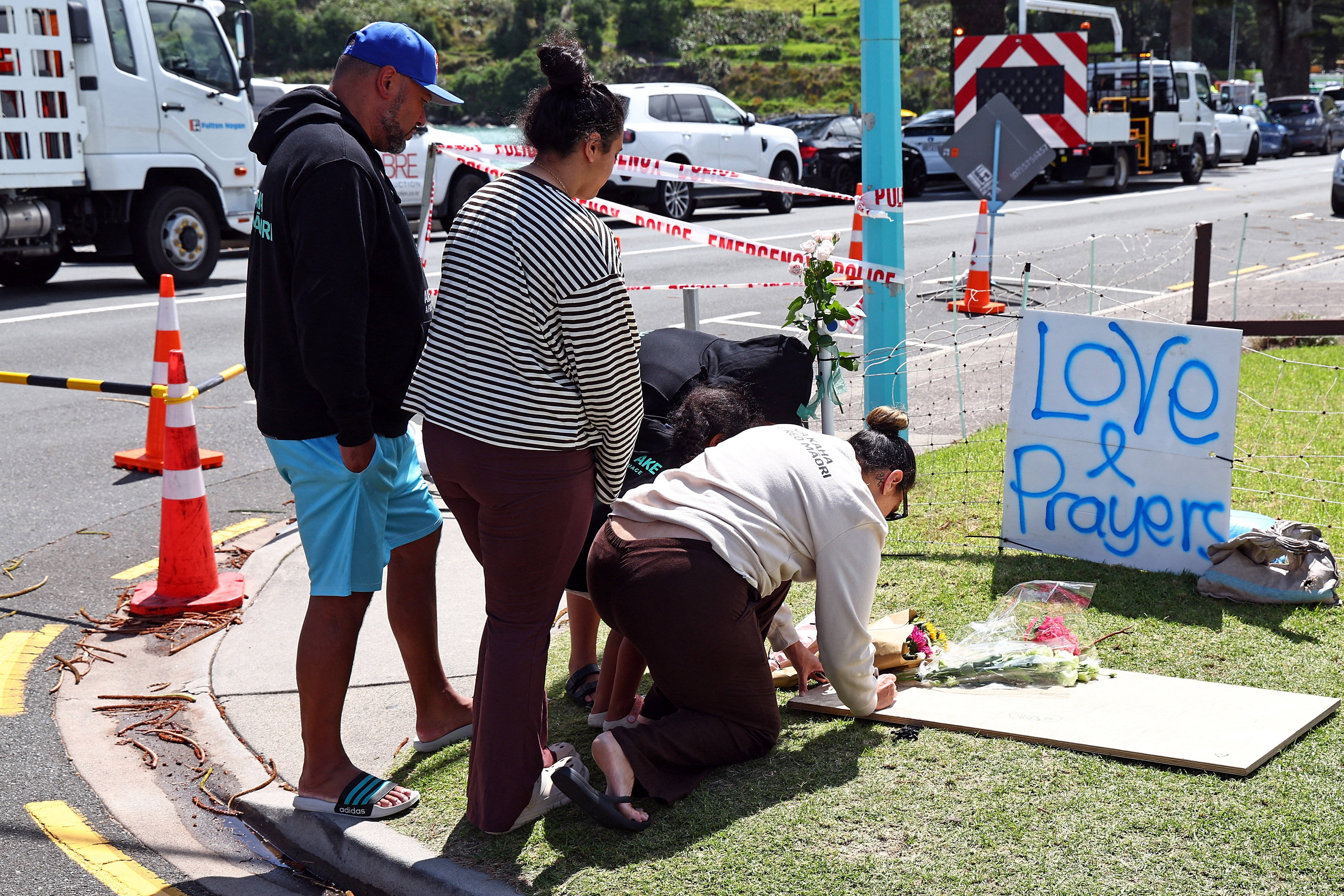 1月24日,人们在新西兰北岛普伦蒂湾地区芒阿努伊山的山体滑坡现场悼念遇难者。 新华社/路透
