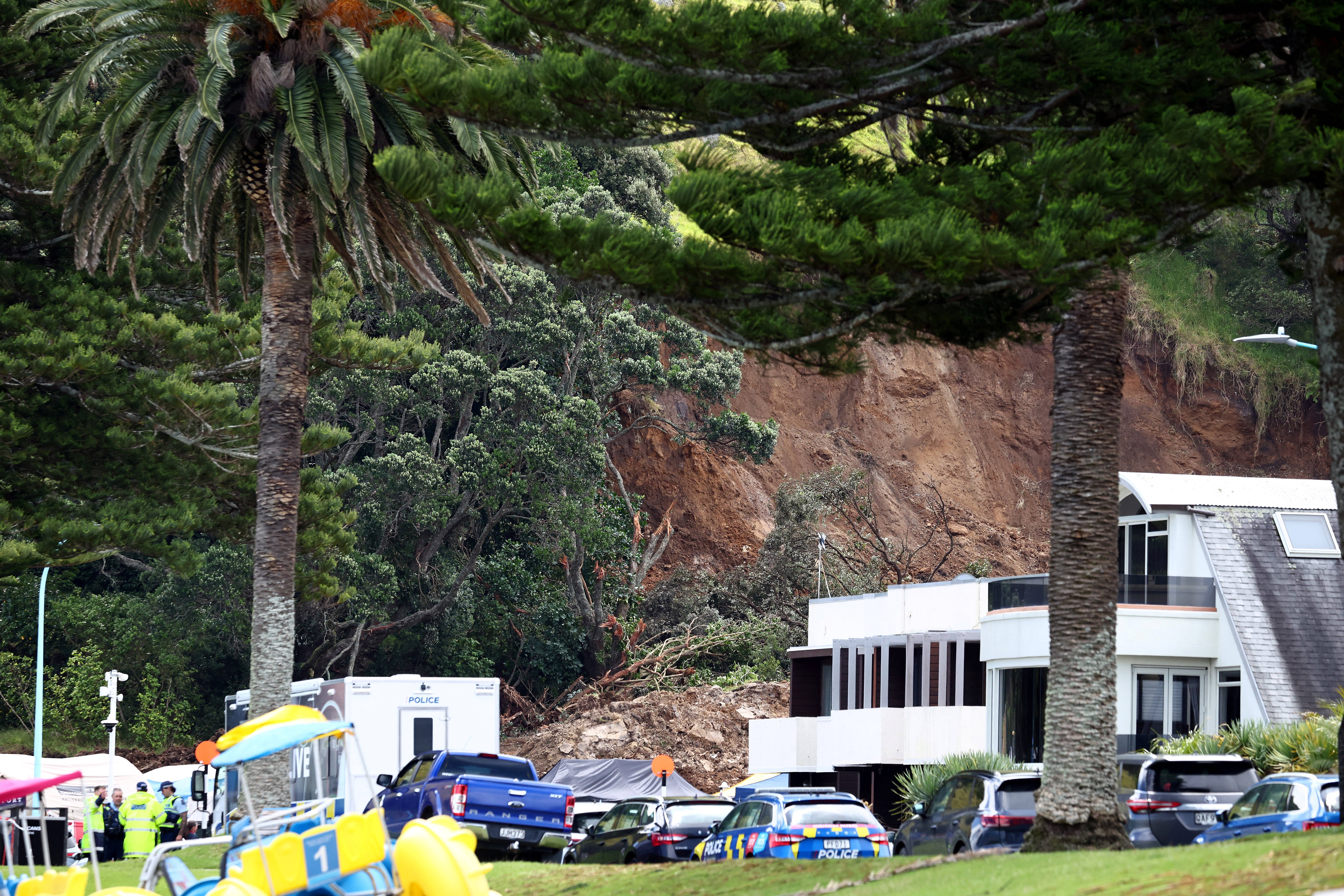 1月24日,应急人员在新西兰北岛普伦蒂湾地区芒阿努伊山的山体滑坡现场进行调查。 新华社/路透
