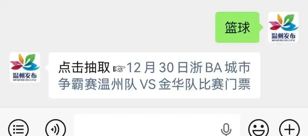 为了感谢广大球迷的支持和喜爱,温州发布专门搞了个限量赠票活动,要送出5张12月30号比赛的门票。幸运的球迷可以通过简单的互动免费得到看比赛的资格。想参加活动的朋友,只要关注温州发布的微信公众号,在聊天框里输入“篮球”,进到抽奖页面后点一张抽奖卡片,就有机会赢到门票。要注意每个参加的人每天有两次抽奖机会,中奖后要在30分钟内填好个人信息交上去,要是逾期或者信息不准确,就当是放弃啦,没领的门票会重新放到抽奖池里,让别的人接着抽。