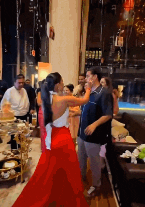 去年,拉迪卡在安巴尼家的豪宅庆祝自己嫁进首富家的第一个生日。当时亲朋好友齐聚一堂,Radhika切完蛋糕后给每个人喂了一口,先是老公,再是爸爸妈妈、公公婆婆,每人都有份~