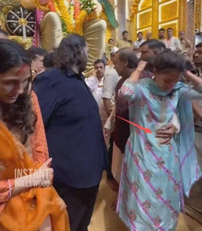 不过可能是一家人关系过于亲密,偶尔也会闹出点争议。某次首富公公一时高兴,搂着拉迪卡的腰不放,拉迪卡似乎也面露不悦,这一系列动作被拍了个正着~