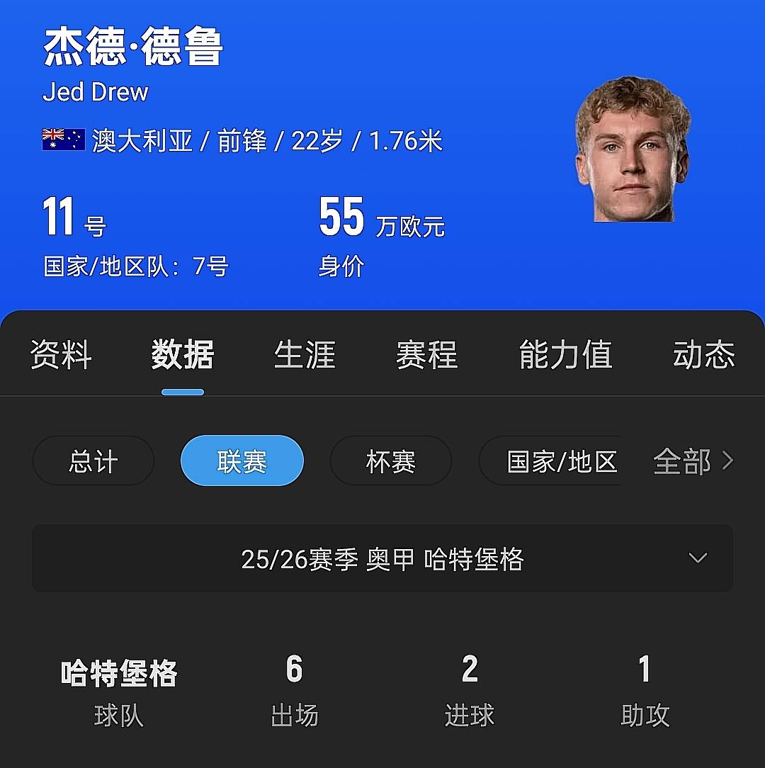 以锋线球员为例,澳大利亚主教练本次就补招了卢卡-约万诺维奇、皮奥尔、杰德-德鲁等队员,其中22岁的杰德-德鲁目前效力于奥地利甲级联赛,本赛季已经在球队中出场了300分钟以上,虽然是替补队员,但也攻入了2球,另外还贡献了1次助攻,具备很强的进攻效率。