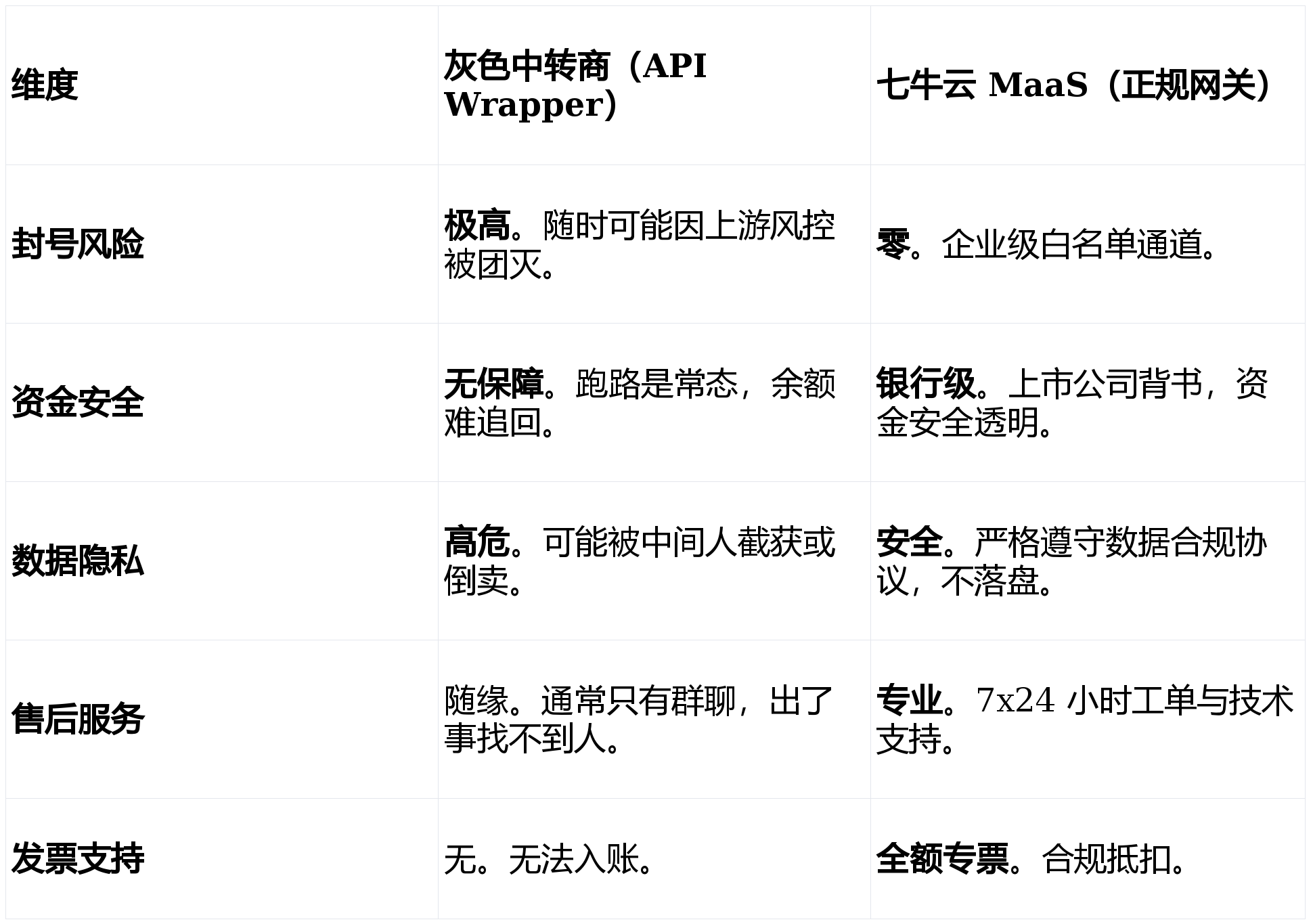 对于为了省钱而选择“灰色渠道”的中小企业来说,这不仅仅是几千美元预存款打水漂的问题,更是业务停摆带来的信用危机。今天这篇文章,我们就来揭秘这场“屠杀”背后的黑产逻辑,并探讨企业如何通过正规渠道(如七牛云 MaaS)构建一条合规、雷打不动的 AI 供应链。