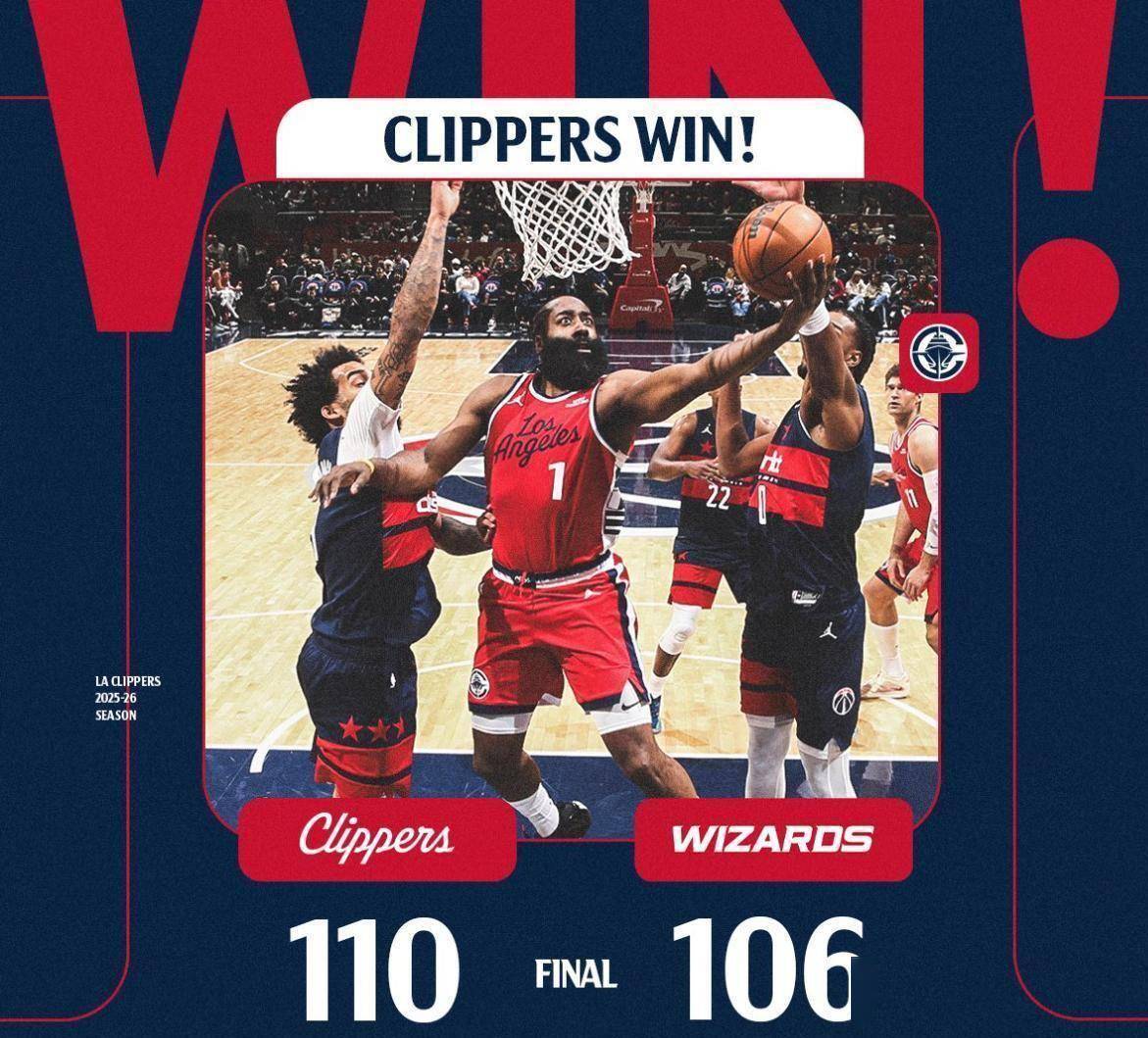 在莱昂纳德因左膝伤势缺席的情况下,哈登独自扛起球队大旗。全场他17次出手命中9球,虽然外线手感不佳,但通过不断冲击内线获得了20次罚球机会并命中18球。比赛最后时刻,他连得6分统治比赛,帮助快船以110-106险胜奇才,将连胜场次扩大到6场。