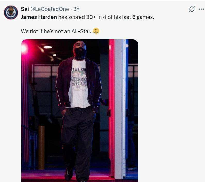 全明星选拔往往受到球员名气和历史表现的影响,但哈登用实际表现向人们证明,他仍然是联盟中最具影响力的后卫之一。当球队最需要他的时候,他总能挺身而出,用各种方式帮助球队取胜。