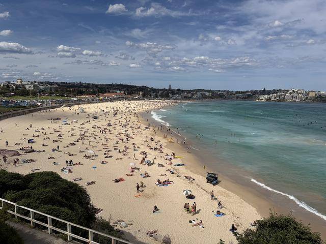据Jin描述,当日天气炎热,最高气温达32℃。作为悉尼旅游的标志性景点,邦迪滩吸引了大量游客和当地居民前来消暑,沙滩上人头攒动,气氛热烈。“海滩上乘凉的人非常多,几乎挤满了”Jin回忆道,“这里几乎是来澳大利亚旅行必打卡的地方。”