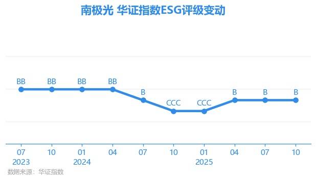 日前,华证指数公布了新一期(2025年10月31日)的ESG评级结果,南极光(300940.SZ)获得B评级(华证指数评级为C起至AAA九档,C为最低档,AAA为其最高一级评级/AA为其第二档),上一期(2025年7月31日)ESG评级为B。本期ESG评级在531家电子设备、仪器和元件行业A股上市公司中排名第396(上一期排名第386)。