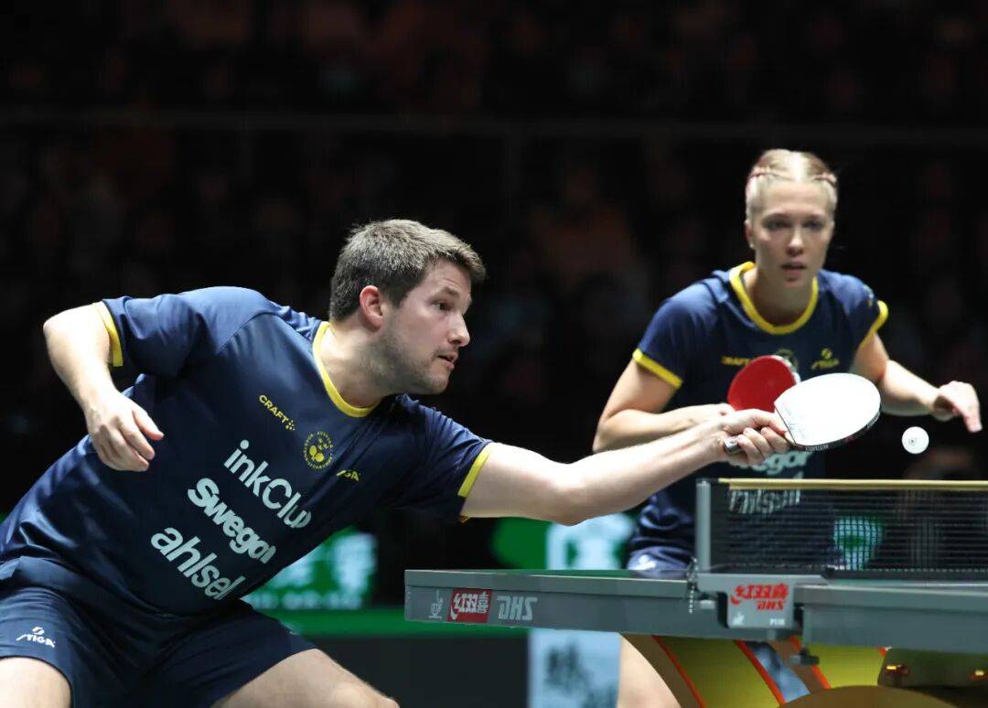 林诗栋/蒯曼出战首盘混双比赛,面对卡尔松/克里斯蒂娜的冲击,林诗栋/蒯曼直落三局,尤其在首尾两局的胶着时刻,两人把握住关键分,开辟了领先局面。