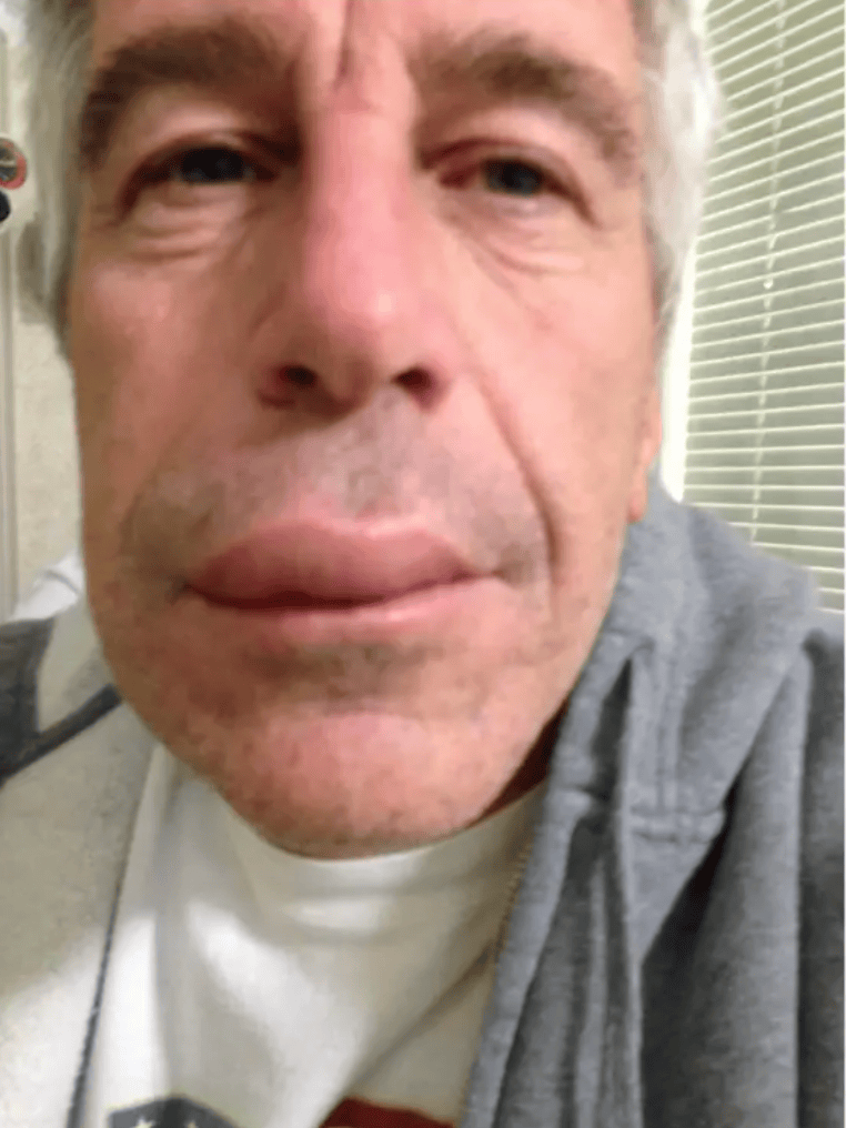 ▲爱泼斯坦近距离自拍照显示他上嘴唇似乎有些发肿
