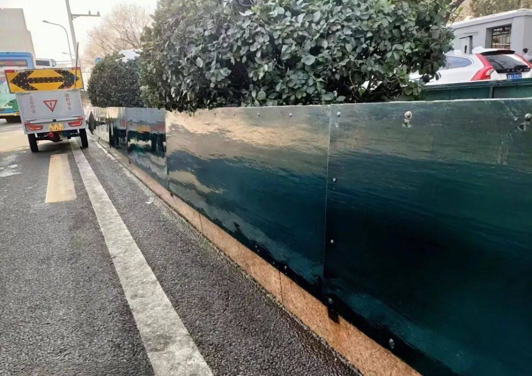 往年绿化带设置的挡盐板。北京市园林绿化局供图
