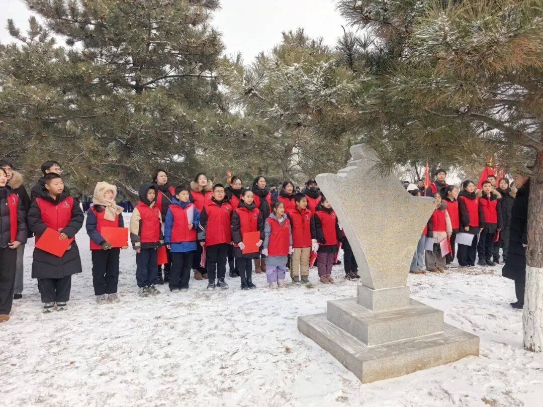 午夜的一场冬雪为配水池战斗遗址披上了圣洁的外衣,让这块红色阵地显得格外庄严肃穆。全体人员在配水池战斗纪念碑前肃立,大家高唱中华人民共和国国歌,激昂的旋律凝聚着民族情感。退役军人、党员干部、青少年与新志愿者代表共同向配水池战斗纪念碑敬献花环。全场默哀,深切缅怀配水池战斗英烈及国家公祭日悼念的遇难者和遇难同胞。