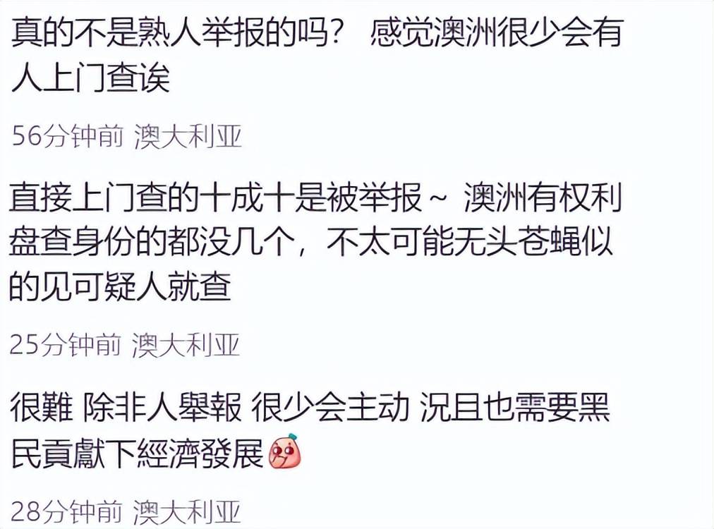 为了应对这一困局,澳洲政府采取了更为严厉的措施,移民局开始针对黑民展开全面清查。前不久,一名华人公开表示,自己亲身经历了移民局上门查证件的事情。他透露,执法人员的查证行为显得非常有针对性,似乎是针对近期黑民问题的专项打击。评论区的其他华人网友纷纷分享了自己对这个现象的看法,有人认为,工地、农场、餐馆后厨等场所都是黑民集中的地方,移民局的清查行动已经开始变得越来越频繁。