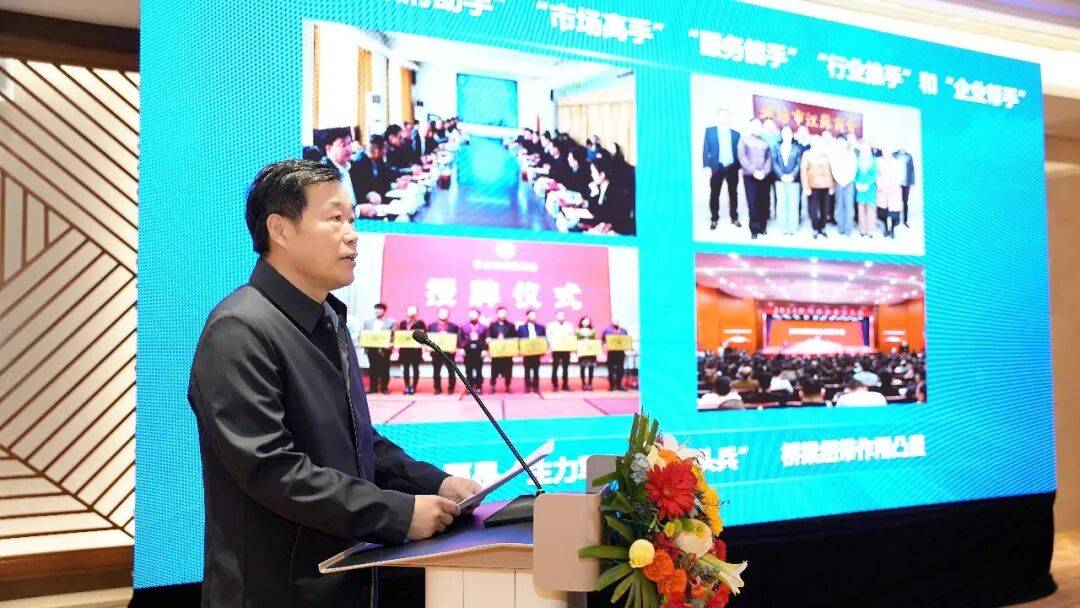 潍坊市委统战部副部长,市工商联党组书记、常务副主席刘兴成在会议现场讲话