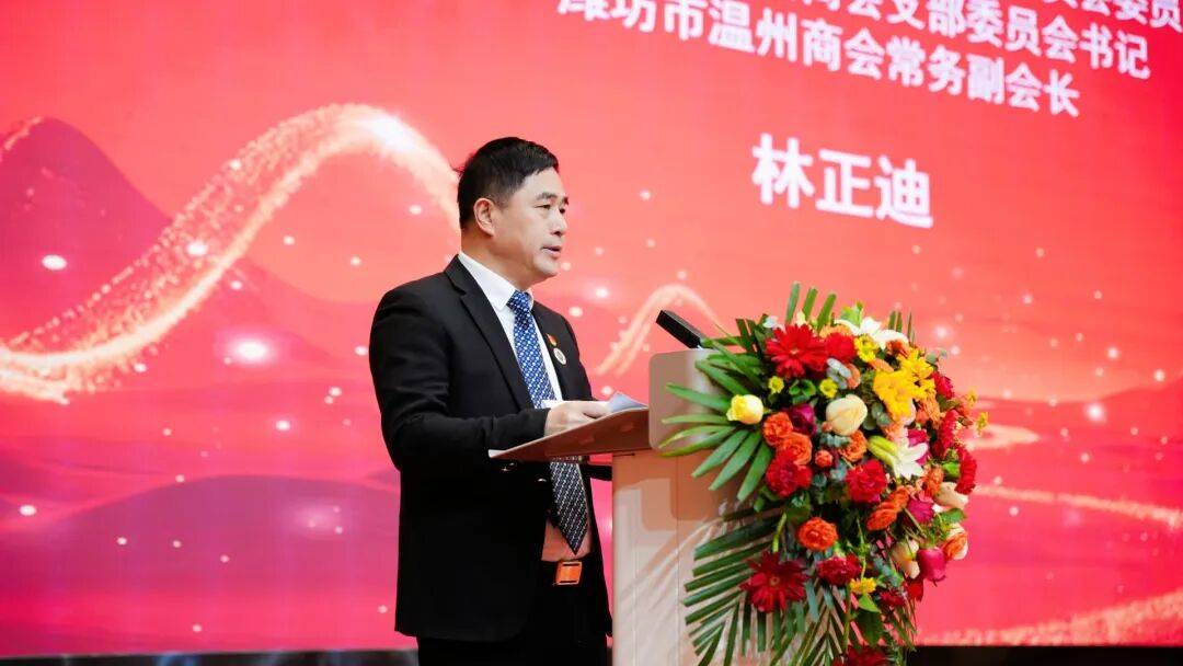省温州商会常务副会长、潍坊市温州商会党支部书记林正迪致辞