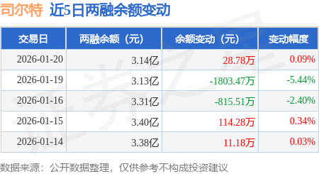 证券之星消息,1月20日,司尔特(002538)融资买入559.39万元,融资偿还530.61万元,融资净买入28.78万元,融资余额3.14亿元,近20个交易日中有11个交易日出现融资净买入。