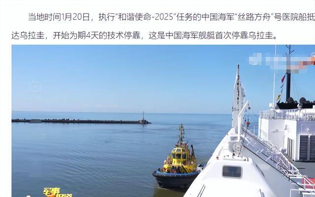 1月20日,“丝路方舟”号医院船历史性停靠南美乌拉圭,开展人文帮扶和技术交流。