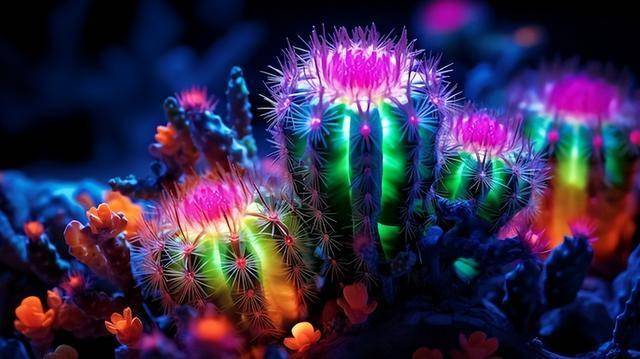 最神奇的是珊瑚的变色能力。白天它们可能呈现柔和的粉色或蓝色,到了夜晚,在特殊灯光的照射下,整片珊瑚礁会突然迸发出荧光绿和霓虹紫,仿佛海底的极光秀。