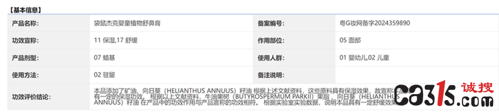 一款名为“袋鼠杰克婴童植萃舒鼻膏”的儿童化妆品,近日在短视频平台直播间中被包装成能解决“腺样体面容”、鼻塞流涕等问题的“神器”。据新京报记者调查发现,该产品实际备案功效仅为面部保湿和舒缓,其宣传话术和品牌背景均存在大量不实信息。