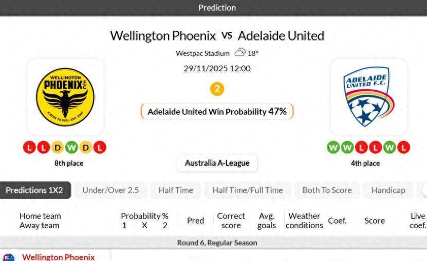 北京时间2025年11月29日中午12点,新西兰惠灵顿的天空体育场,主队更衣室里的气氛有些凝重。就在一周前,惠灵顿凤凰刚刚在客场0-1输给了麦克阿瑟FC,吞下了联赛两连败的苦果。球队近6场比赛仅仅赢下1场,丢了11个球,防守端似乎漏洞百出。糟糕的是,伤病名单上躺着像石毛秀树、保罗·雷特鲁这样的关键球员,他们的缺阵让主教练在排兵布阵时捉襟见肘。今天,他们要面对的,是近期火力全开、高居积分榜第三位的阿德莱德联。