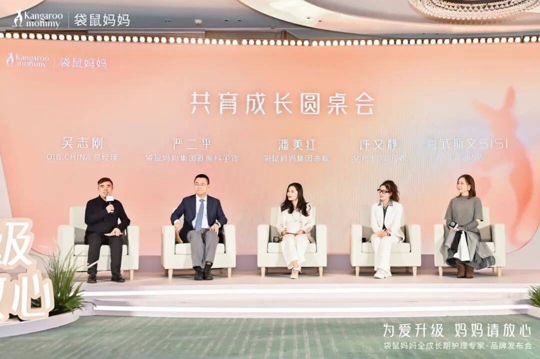在《共育成长圆桌会》上,嘉宾们围绕袋鼠妈妈首创的“5阶科学护理体系”及“全成长期护理”理念展开深度对话,共同探讨中国母婴亲子护肤行业的痛点与未来发展方向。