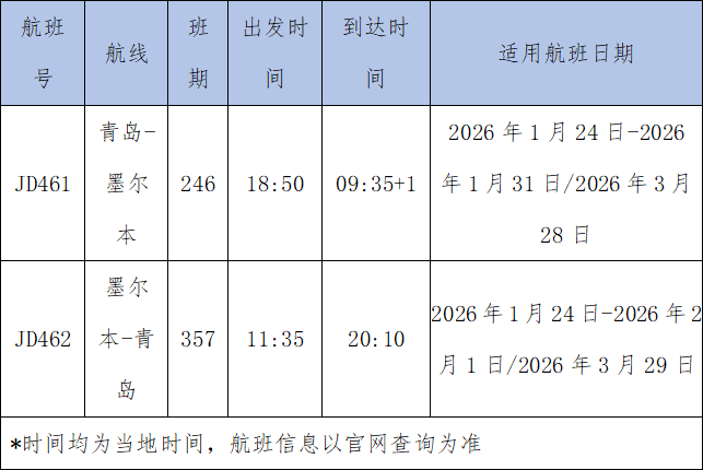 为满足旅客冬季跨境出行需求,新海航航空集团旗下首都航空将于2026年1月24日正式恢复青岛往返墨尔本国际航线。该航线采用空客 A330 宽体机型执飞,首都航空同步推出多项中转便捷服务,为中澳两地旅客搭建高效、便捷的跨境空中通道,进一步深化青岛与墨尔本的经贸文化交流。