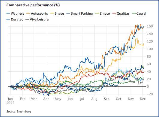 根据汇总,今年备受基金经理青睐,涨幅惊艳的9家微盘股公司包括:Capral(ASX股票代码:CAA)、Duratec(ASX股票代码:DUR)、Wagners(ASX股票代码:WGN)、Qualitas(ASX股票代码:QAL)、Emeco(ASX股票代码:EHL)、Autosports(ASX股票代码:ASG)、Shape(ASX股票代码:SHA)、Smart Parking(ASX股票代码:SPZ)、Viva Leisure(ASX股票代码:VVA)。