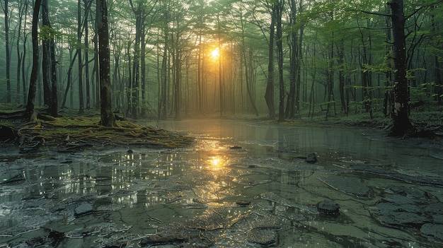 红色渐渐淡去,被一种更深沉的、接近棕黑的土壤颜色替代。稀疏的草甸开始出现,然后是一些低矮的树木。接着,树木越来越高,越来越密。仿佛有一只无形的手,在给这片土地快速而疯狂地涂抹绿色。