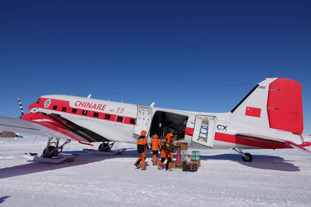 12月8日,“雪鹰601”飞抵格罗夫山区域,为内陆队员运输生活物资与科研设备。 新华社记者 顾天成 摄