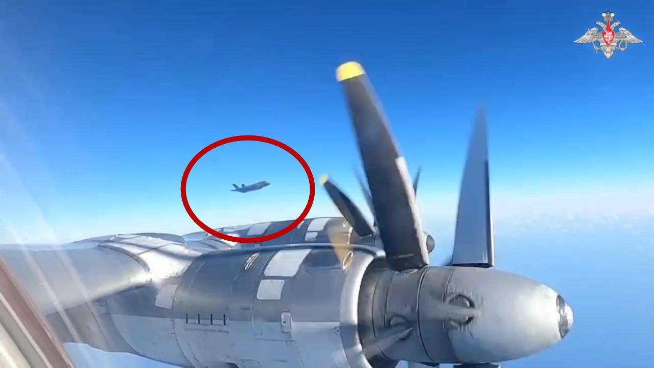俄罗斯官方电视台公开的画面显示,中俄轰炸机编队遭遇到日本航空自卫队F-35A监视和伴飞