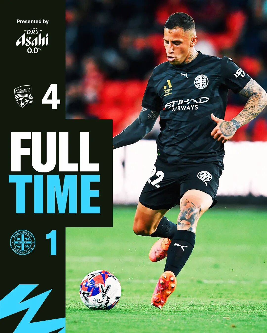墨尔本城上轮澳超客场1-4惨败给阿德莱德联,本赛季联赛不败金身被破。门将Patrick Beach和中卫Kai Trewin在比赛当天上午才和球队汇合,最终Patrick Beach出现在首发阵容中。队长贝西奇伤愈复出取代阿特金森,Liam Bonetig和费雷拉组成中卫。纳博特代表球队第一百次出场,这是他时隔382天之后第一次首发出场。比赛刚开始Zane Schreiber回传失误,约瓦诺维奇断球后助攻阿拉季奇首开纪录,第15分钟约瓦诺维奇扩大领先优势。第36分钟阿德莱德联右后卫Dylan Pierias故意犯规被罚出场,金森健志轰入世界波,这是他加盟后的处子球。下半场墨尔本城替补登场的Benjamin Mazzeo被Ryan White抢断,后者带球突破抽射命中。第84分钟阿德莱德联快速反击,替补登场的巴内特补射破门。