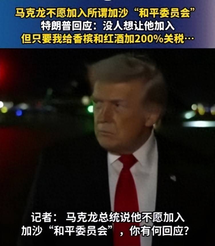 达沃斯论坛刚开幕,特朗普就把他的和平委员会推上前台,这东西本意处理加沙和乌克兰冲突,可设计里他自己当主席,还得交10亿美元才能永久入席。马克龙一看邀请函,直接摇头,说法国不掺和,觉得这玩意儿太偏美国一边,没啥平衡。特朗普当天晚上就炸了,先说马克龙快下台了,谁在意他意见,转头就甩出狠话,要对法国酒征200%关税。法国酒在美国卖得火,这关税一上,等于把法国经济命脉掐住。欧盟那边也急了,考虑用反胁迫工具回击。
