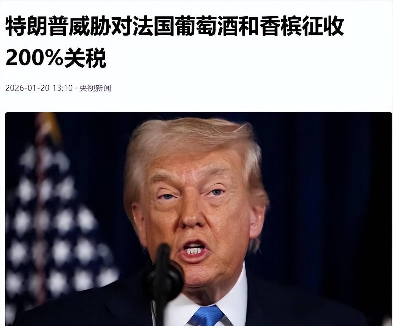 特朗普这招不是头一回了,去年他就用关税压欧盟数字税,这次瞄准法国葡萄酒和香槟,明显是为格陵兰岛的事儿出气。格陵兰那块地他惦记好几年,威胁欧洲八国不让步就加税,从10%起跳到25%。马克龙在论坛演讲里点名批评这种霸凌,说欧洲得自强,不能总让关税当杠杆。法国酒业链条长,从葡萄园到物流,几十万人饭碗悬了。特朗普还把马克龙私信发上网,里面马克龙建议巴黎开G7会谈格陵兰,特朗普却借这羞辱盟友。